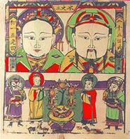 隋杜臺(tái)卿《玉燭寶典》引《灶書》稱,“灶神,姓蘇,名吉利,婦名搏頰”。唐李賢注引《雜五行書》又稱,“灶神名禪,字子郭,衣黃衣,披發(fā),從灶中出”。灶神初為女神,或稱是老婦,或稱是美女,說法諸多。大約出于清代的《敬灶全書》則稱,灶君姓張,名單,字子郭,當(dāng)屬男神?,F(xiàn)在民間供奉的東廚司命定福灶君,是一對(duì)老夫婦并坐,或是一男兩女并坐,即灶君和灶君夫人的畫像。