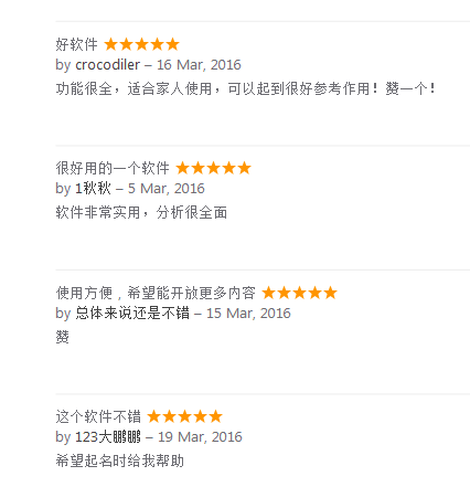 美名騰智能起名網(wǎng)蘋果手機(jī)APP上線以來,受到用戶的廣泛贊譽(yù),以下是一些用戶的反饋: