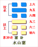 這個(gè)卦是異卦(下艮上坎)相疊??矠樗?,艮為山。山高水深,困難重重,人生險(xiǎn)阻,見(jiàn)險(xiǎn)而止,明哲保身,可謂智慧。蹇,跋行艱難。