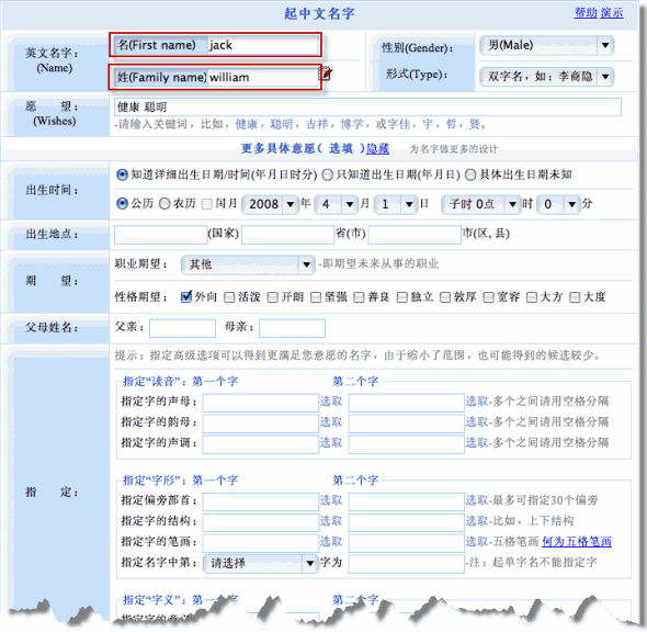 1、輸入如下所示的起名基本信息