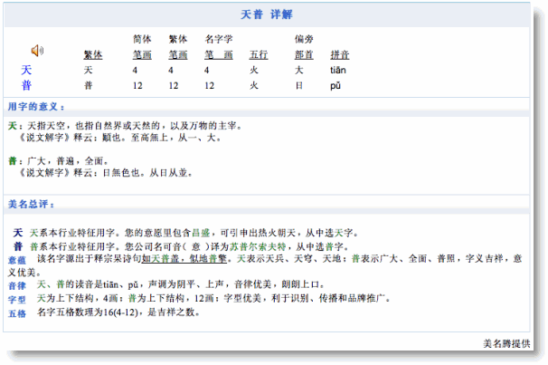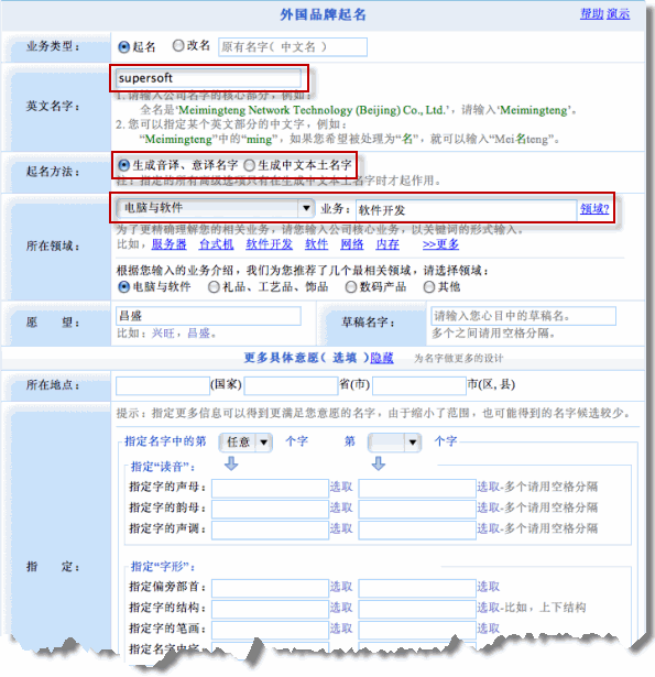 2、根據(jù)輸入的英文名和所在領(lǐng)域,美名騰給出最接近領(lǐng)域特色的音譯、意譯名,如下圖所示