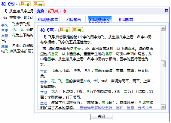 | 如果希望獲得更多有關(guān)使用“美名騰起名交互功能”的技巧,請(qǐng)參考利用豐富的交互功能輔助起名字。 |