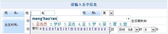 使用人名解析功能解析名字時(shí),您可以在輸入姓氏時(shí),使用輸入法將整個(gè)名字打出來(lái),然后按空格鍵,您的姓氏和名字會(huì)自動(dòng)填入到對(duì)應(yīng)的輸入框中。下圖演示了這一過(guò)程。