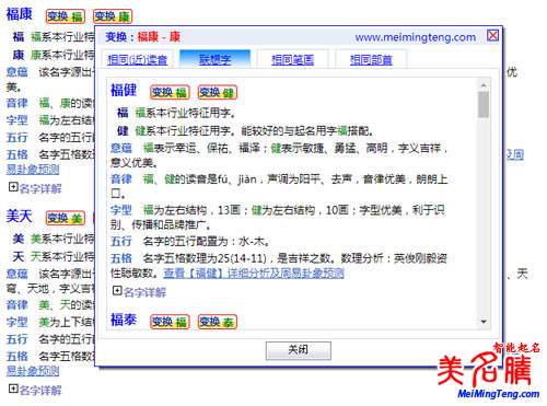 對(duì)于推薦的名字,還可以進(jìn)行各方面的變換,得到新名字