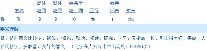 2、“修”字的姓名學解釋