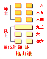 周易98分 “林澤銘”的本卦為周易第15卦謙卦(地山謙),動爻為九三爻(在從下往上數(shù)第3爻),變卦為周易第2卦坤卦(坤為地)(依據(jù)《周易》、《梅花易數(shù)》)。