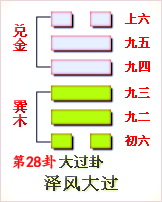 周易98分 “孫儷”的本卦為周易第28卦大過卦(澤風(fēng)大過),動爻為初六爻(在從下往上數(shù)第1爻),變卦為周易第43卦夬卦(澤天夬)(依據(jù)《周易》、《梅花易數(shù)》)。