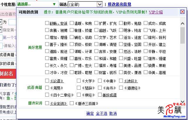 美名騰智能起名VIP會員高級功能