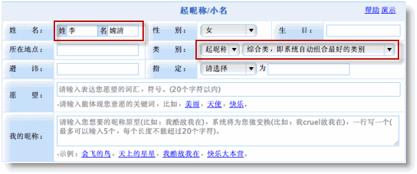3、根據(jù)所得的昵稱,您還可以做各種個(gè)性化的變換,以得到個(gè)性十足的昵稱,如下圖所示